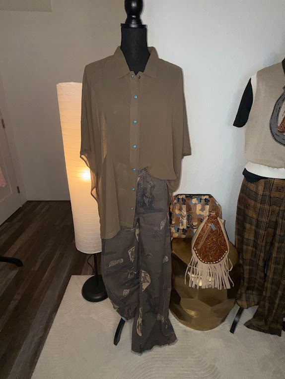 printed pattern on chocolate denim.