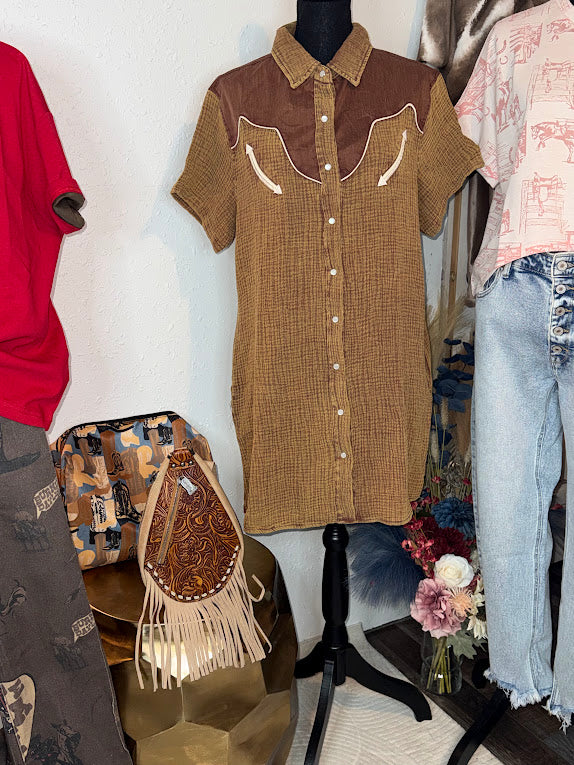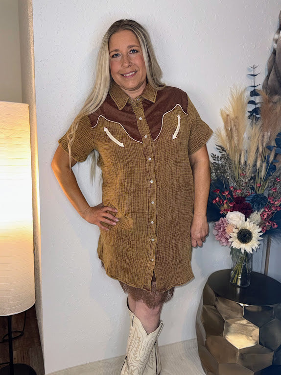 you know that super comfy super soft material we use for the RODEO GROUNDS top -- well we used it for a dress, PLUS mixed it a different type of material.