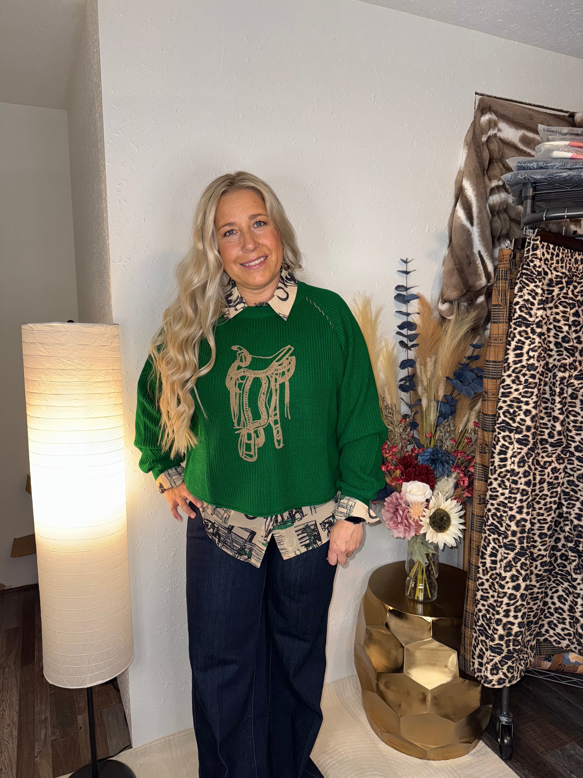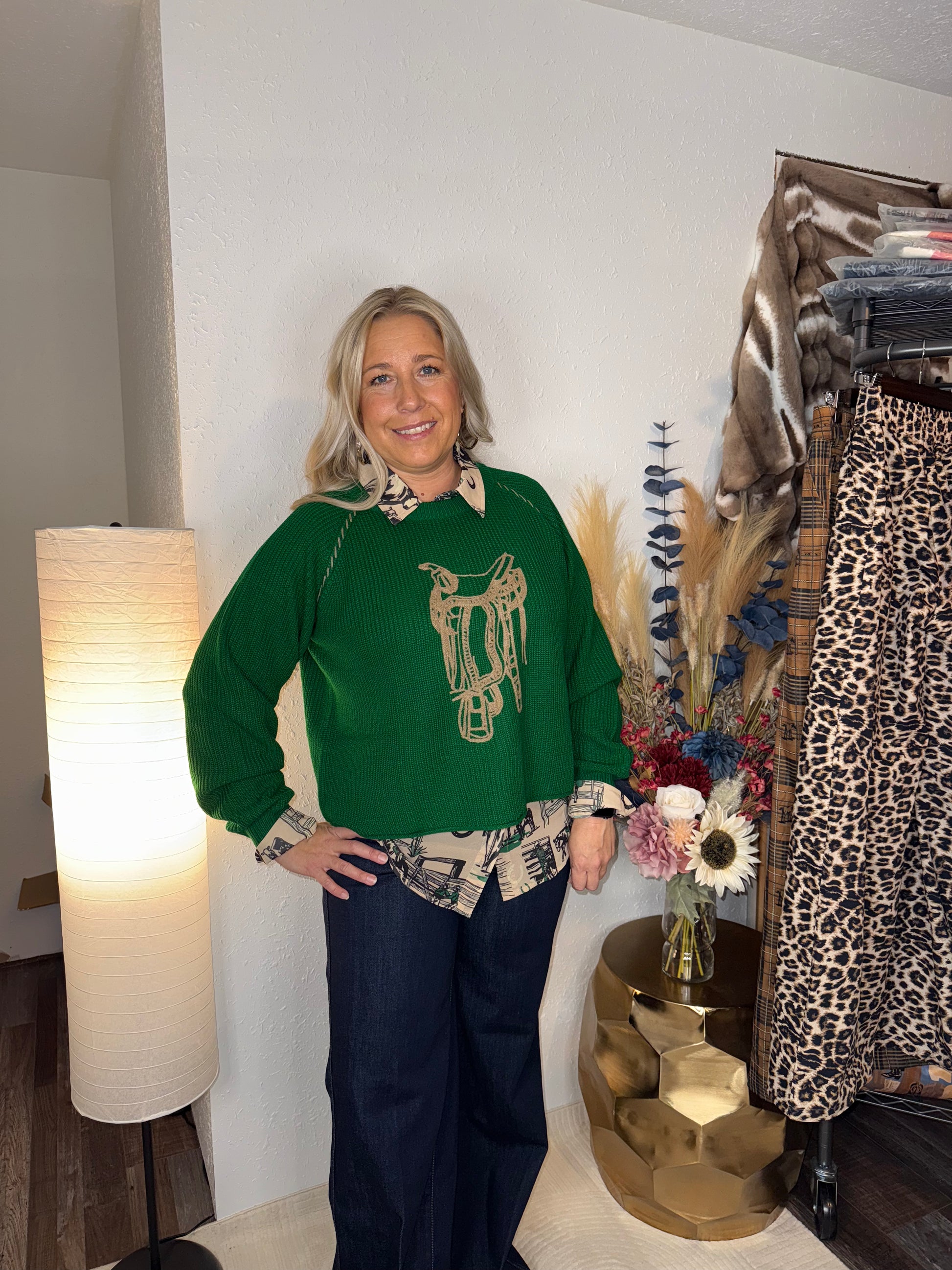 this knit thoughhhhh -- it's literally the PERFECT shade of green. it pairs SO WELL with the GREENER PASTURES. we ALL about that layering vibe it's just the right amount of color.