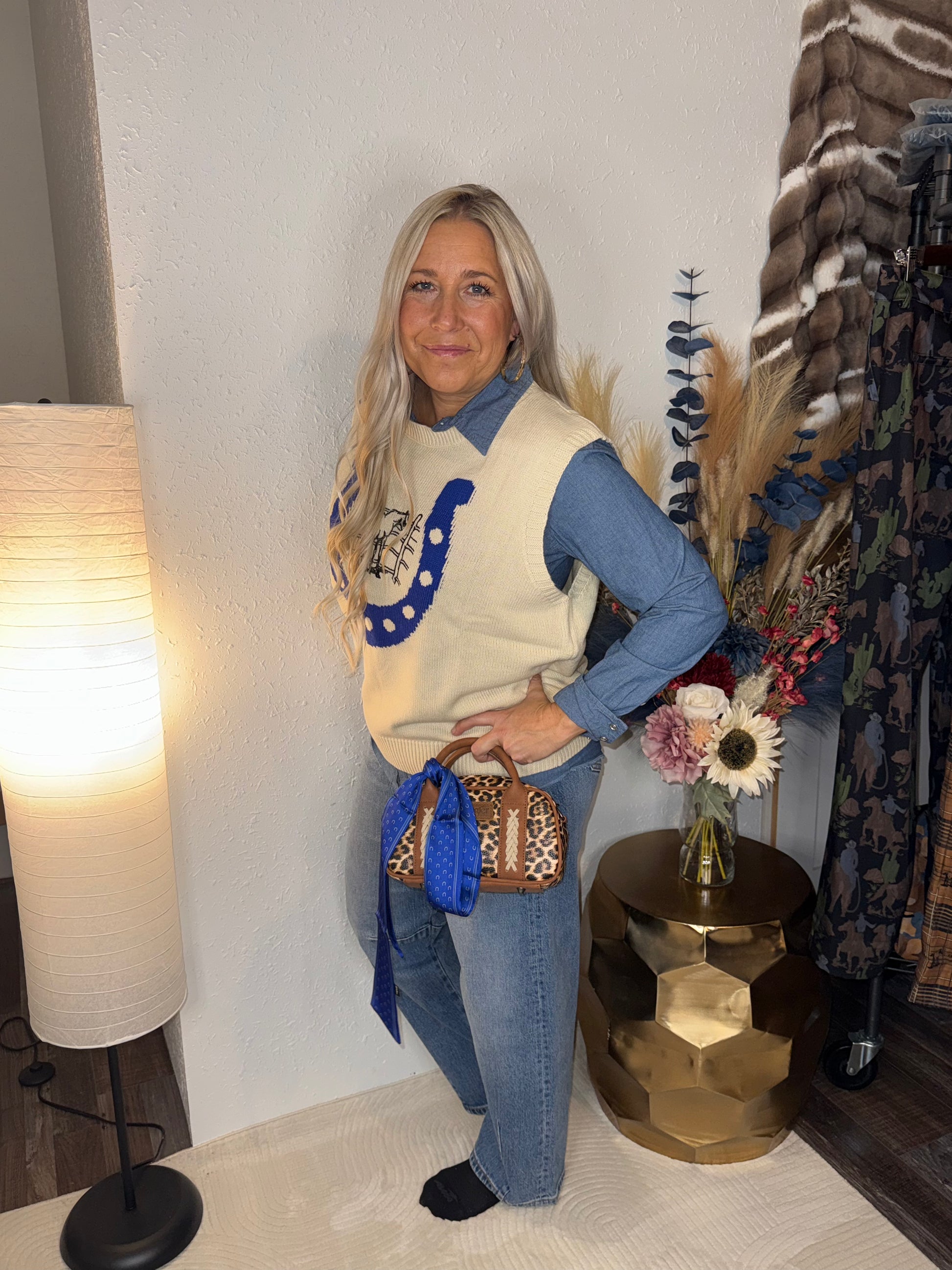 Get the preppy look by pairing it with a collared shirt, tying it in your hair, or giving that LOUIE handbag a Western flare by tying the handles. Again, the options are seriously endless.